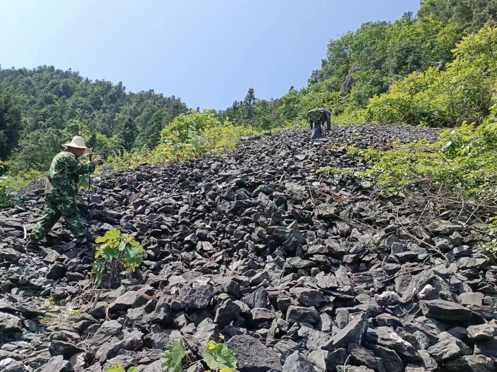 ▲技术人员正在隆回县石桥铺金矿普查项目上开展野外地质调查工作。(李晓峰摄)
