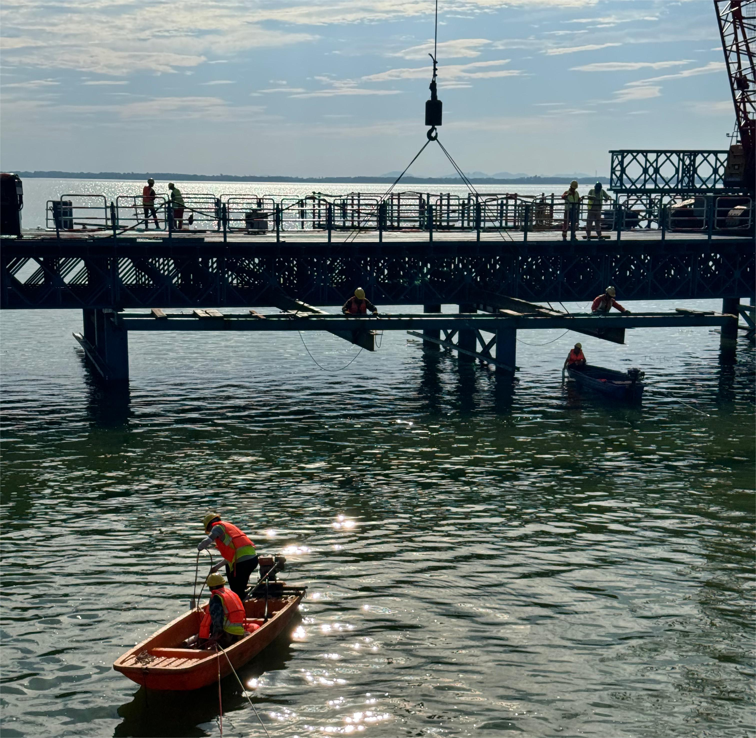 ▲天子山大桥2#、3#、4#作业平台物探勘察项目进行物探勘察工作(张琦、吕海斌摄)