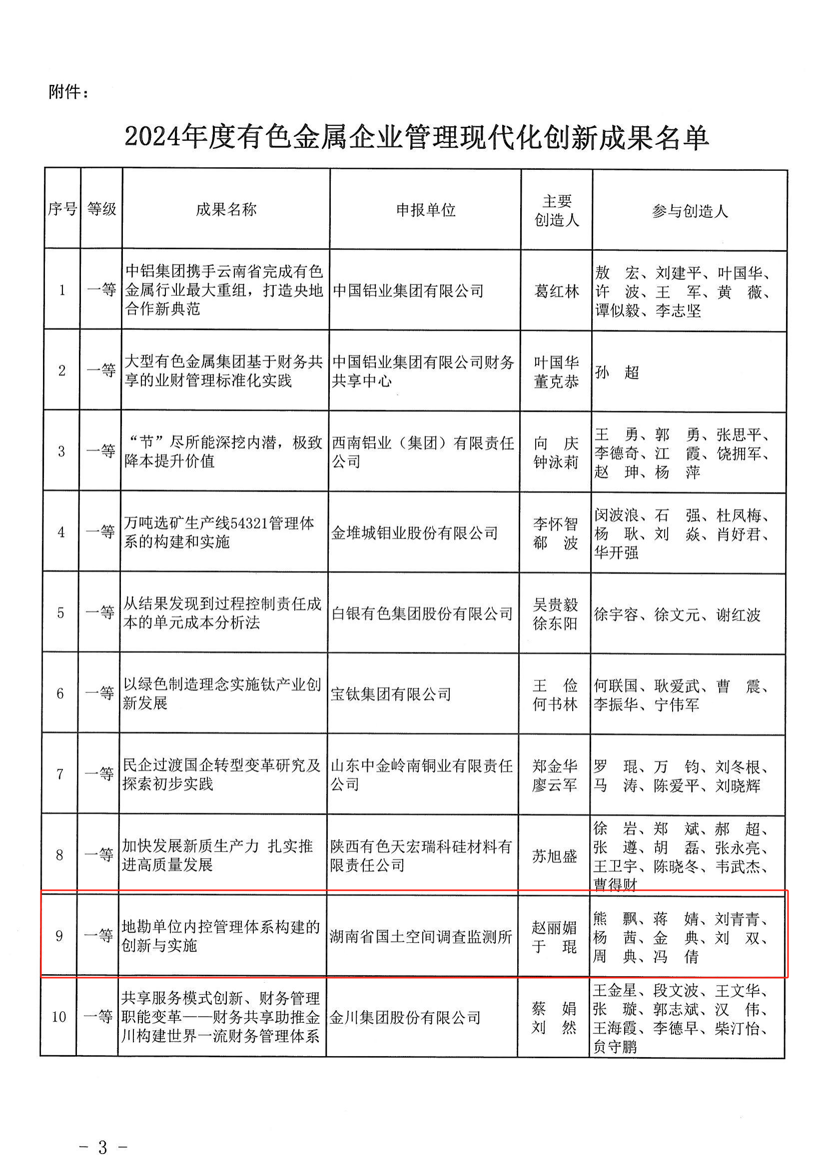 近日,中国有色金属工业协会发布2024年度有色金属企业管理现代化创新成果名单。省空间所申报的《地勘单位内控管理体系构建的创新与实施》成果荣获一等奖。