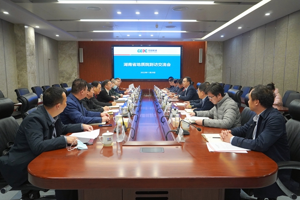 谈文胜首先感谢中国能建湖南院一直以来对湖南地质单位的信任和支持,并从历史贡献、职能职责、人才力量、科研成果等方面简要介绍了省地质院基本情况。他表示,中国能建湖南院是我省能源建设领域排头兵,在绿色能源产业发展方面经验丰富,特别是与省地质院下属的省工矿所联合实施长沙机场中深层地热探采结合及换热测试项目,见证了双方综合实力,表明双方业务领域有渊源、携手有基础、合作有空间、发展有前景。他希望,双方本着立足长远、友好合作、互惠互利、共同发展的原则,在新能源资源开发利用、科研创新、工程施工、生态文明建设等方面建立多层次、全方位战略合作关系,共同构建多元化清洁能源供应体系,合力保障我省资源能源安全,共同服务湖南“三高四新”战略定位和使命任务。