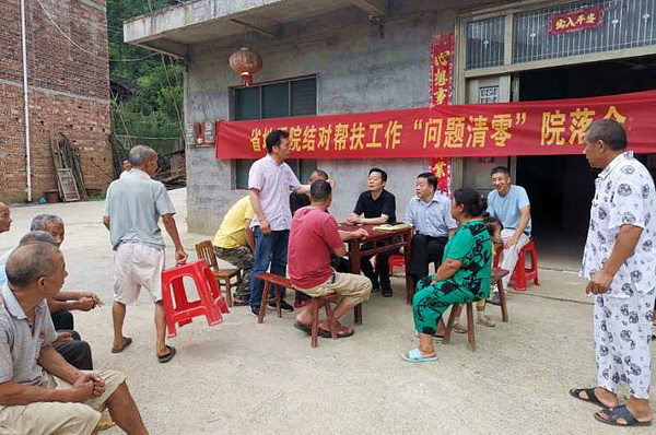 7月8至9日,院长何寄华来到新宁县潘家村,深入现场查看道路建设、危房改造、饮水工程、电路改造、槐米基地、村集体经济场等情况,到村民家中了解情况,慰问特困户,现场督导检查“问题清零”工作,询问了解村民的意见建议。在潘家村部会议室,主持召开督导检查脱贫攻坚成果巩固工作座谈会,听取村支两委和驻村帮扶工作队脱贫攻坚情况汇报,与镇、县相关负责人围绕如何巩固脱贫攻坚成果进行深入交流,晚上与驻村工作队员促膝谈心,交流思想与工作体会。