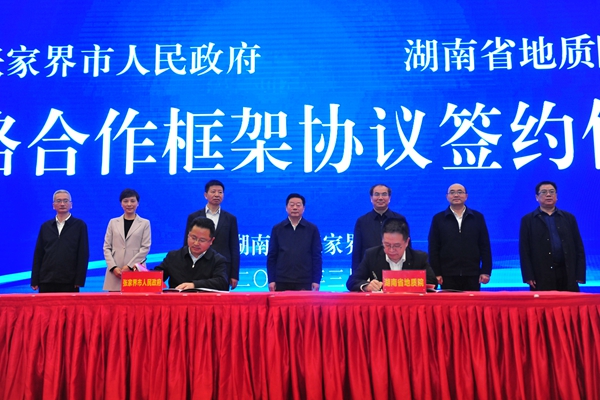 何寄华指出,当前正是贯彻落实党的二十大精神、全国两会精神,全省上下“全力拼经济、聚力谋发展、加力促开放、着力强合作”之时,双方签署协议是合作聚能的战略之策,是发展聚焦的务实之为,是协同聚力的进阶之举。张家界因地质构造而生,因地质景观而美,因地质优势而兴,因地质旅游而强。建设现代绿色新型张家界与省地质院实施“一体两翼三支撑”发展战略、打造全国一流现代化的地质湘军目标十分契合。就进一步深化战略合作,他强调,要进一步加强领导、完善方案、制定措施、务实推进、凝练经验,聚焦张家界发展过程中的重点、难点、堵点,加强供需对接,建立清单,健全机制,推动绿色转型、旅游发展、民生改善和重要领域服务治理体系提升,为张家界高质量发展提供地质方案和途径,更好践行绿水青山就是金山银山理念。