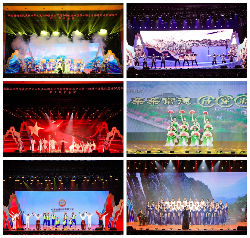 文艺展演以“光荣属于新时代地质筑梦人”为主题,分为“青山不墨千秋画”“乘风破浪会有时”“看似寻常最奇崛”“而今迈步从头越”四个篇章。院机关、院属15家事业单位、院管企业演出人员悉数登场,将歌舞、相声、话剧、朗诵等多种艺术形式汇聚成19个节目,共同彰显了地勘单位职工的精神风貌和爱国情怀。《地质绘山河》《地质光荣 奋斗有我》《罗布泊的回响》《矿世之约》《以迅应汛》《探锑报国的现代传奇》情景重现,一遍遍带观众身临其境地感受了湖南地质人不畏艰险的意志品质;《红旗颂》《我和我的祖国 勘探队员之歌》《守护》《未来已来》《飞天·奋进者之歌》《测绘之光·智绘未来》美轮美奂,一场场视觉盛宴呈现在观众眼前;《亲亲常德待客来》《“筑”福祖国》《我这一家子》《核的力量》《地质湘军群英绘》《山河图·踏梦行》《沁园春·雪》别具一格,一次次点燃了现场观众的似火热情。最终,经过现场与场外双通道的投票,核地质所荣获“最佳风采奖”,地灾所、地信所、物化所荣获“最佳人气奖”,空间所、水环所、资源所、核应用中心、院机关荣获“最佳创意奖”,测试中心、矿调所、生态所、工矿所、中南建设公司、地调所、城调所、遥感所荣获“同心协作奖”。