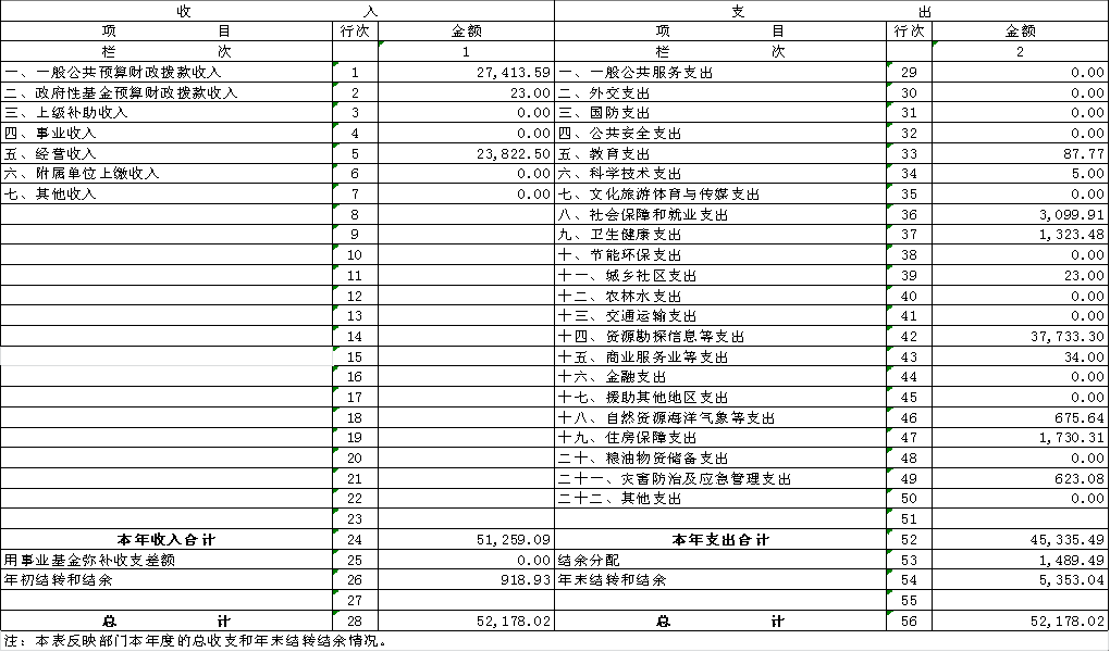 收入支出决算总表