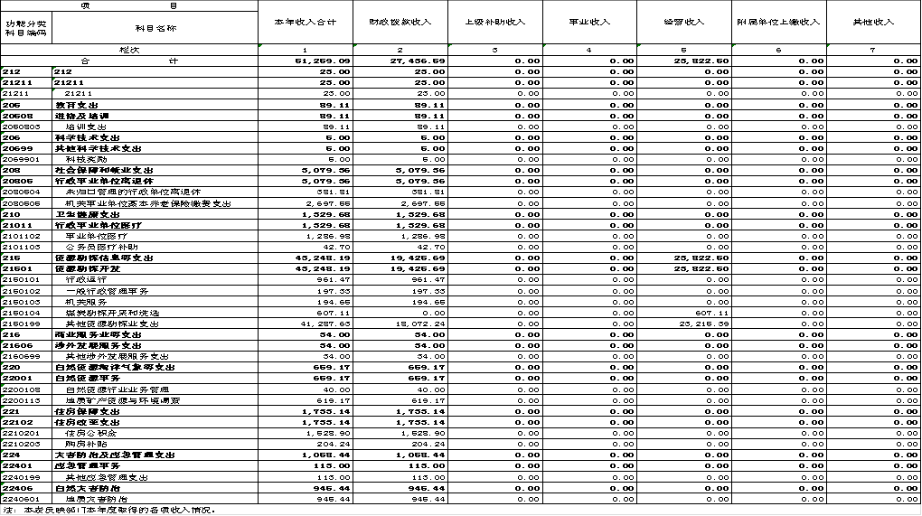 7、资源勘探信息(类)资源勘探开发(款)行政运行(项)。