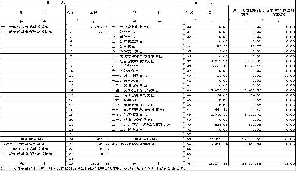 一、收入支出决算总表