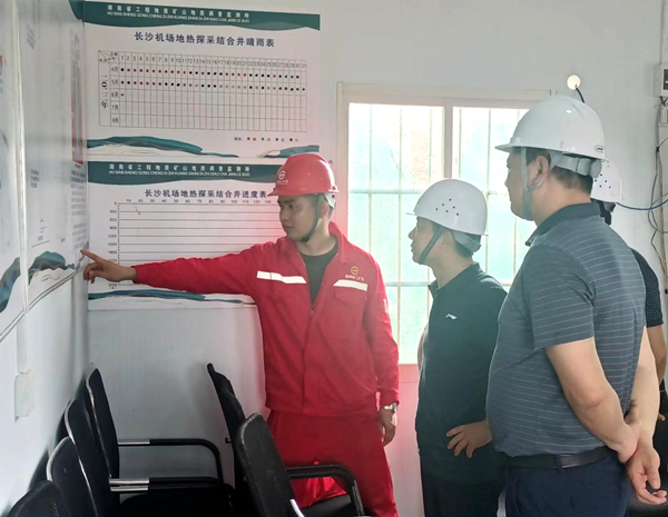 吴宏斌到工矿所长沙机场中深层地热探采项目检查指导