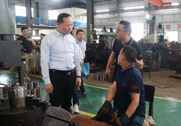 在状元地质装备公司装备车间和热压车间,谈文胜查看了车间的生产作业环境、安全生产设施配置、工作人员的安全防护措施和相关安全管理工作台账,并与车间工人交流,了解工人的日常工作和安全防护情况。要求要始终保持如履薄冰、如临深渊的责任意识,自觉抓好安全风险隐患排查,制定隐患排查清单和整改落实清单;在409老基地生活小区,他对老基地生活小区的房屋年龄、结构,新安装的电梯,置换的地块等相关情况进行了解,指出要高度重视房屋安全,定期安全检查,重点抓好消防安全,及时预警、及时治理小区及周边地质灾害,坚决保障职工群众的生命财产安全。