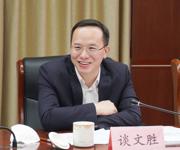谈文胜首先感谢中国稀土集团对湖南地质队伍的信任和支持,他表示中国稀土集团组建成立并迁至赣州,是党中央、国务院保障能源资源安全作出的重大战略决策部署,江西与湖南山水相连、人文相亲、渊源深厚,此次湖南省地质院邀请省自然资源厅共同前来拜访稀土集团,主要是为加快推进湖南省政府和中国稀土集团战略合作协议落地落实。在交流中,他从历史贡献大、改革力度大、队伍规模大、发展潜力大等方面介绍了湖南省地质院基本情况和相关特点,表示湖南省地质院正在积极实施新一轮找矿突破战略行动,实施“一体两翼三支撑”发展战略,希望与中国稀土集团围绕推动央地合作协议具体化、项目化、长效化,加强沟通对接,成立深化合作专班,建立常态化工作联系机制,共同编制相关稀土勘查开发规划,联合开展科研攻关,共同推动湖南稀土产业高质量发展。