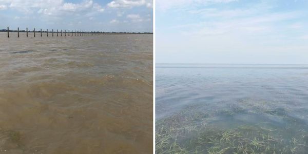2017年9月大通湖水生植被恢复前 2024年6月大通湖生态修复种草后