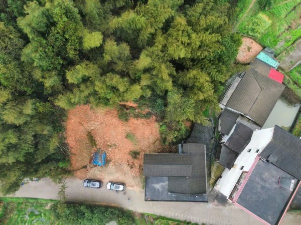 第一站是浮邱山乡的一户人家。房主姓吴,六十多岁,房子靠着山坡切了一面陡坡。我们踩着泥泞绕到屋后,裤腿已经湿了半截。吴大爷跟了过来,有些惊讶:“这么大的雨,还往屋后跑?”我一边解释来意,一边拿出无人机。雨刚停,趁这间隙赶紧飞。等落地后开始测量边坡,吴大爷忽然转身回了屋。几分钟后,他端着一个瓷碗出来:“快喝碗茶,暖暖身子。”
