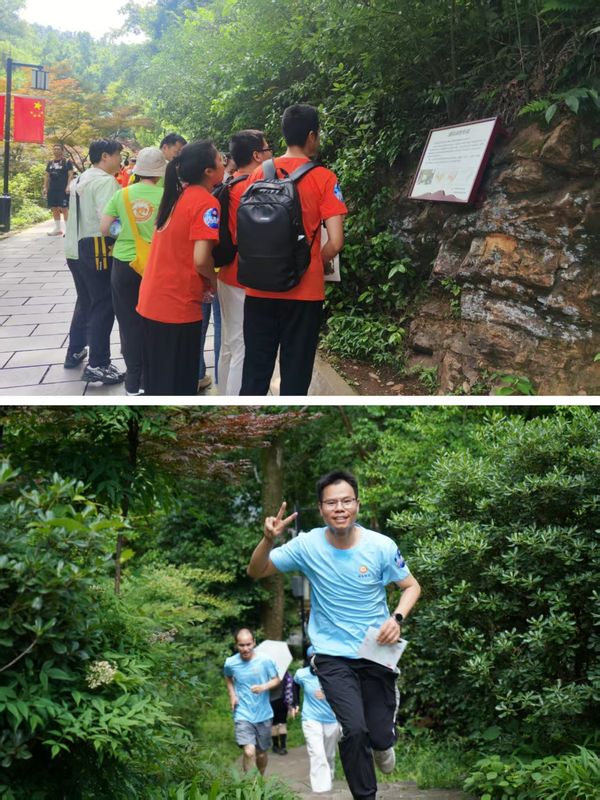 队员们以团队协作方式,依次完成清风峡、战时指挥部旧址、白鹤泉、肖劲光铜像纪念园、响鼓岭等5处地质知识竞答打卡任务,最终抵达终点丁文江墓。近1小时的激烈角逐中,各队伍你追我赶,展现出了新时代湖南地质青年的拼搏精神。最终省地调所获得一等奖,院机关、省生态所获得二等奖,省空间所、省矿调所、省水环所获得三等奖,其余队伍获得优胜奖。