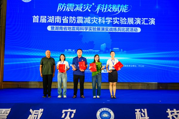 9月14日,首届湖南省防震减灾科学实验展演汇演比赛暨湖南省地震局科学实验展演实战练兵比武活动在常德市圆满举行。本次活动由湖南省地震局主办,吸引了来自全省各市州及地震系统单位的24支队伍参与角逐。由湘潭市地震局推选、湖南省地质院空间所(湘潭市地震和地质灾害应急救援中心)代表湘潭市参赛的展演作品《地震“带”来的滑坡》,最终荣获二等奖(总排名第四)。