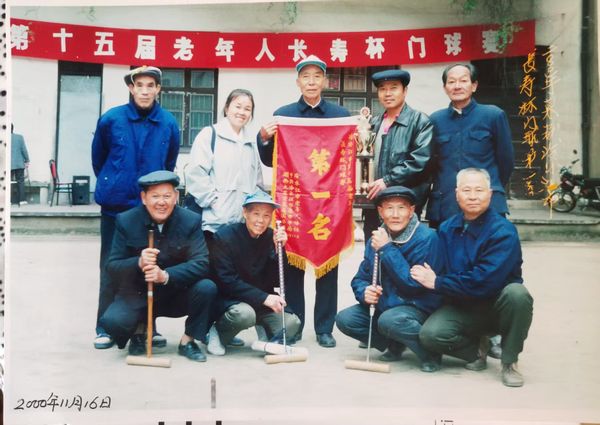 门球运动在20世纪80年代传入中国,我们地质队作为“单位办社会”的典型,有自己的大院、电影院、篮球场,还有门球场。1985年,在原有色地质勘查局246队工会的组织下,我母亲那一代刚退休的地质工作者,拿起了第一支门球杆。从此咱们院里的两块门球场,时常响起清脆的击球声和赢球的欢呼声。
