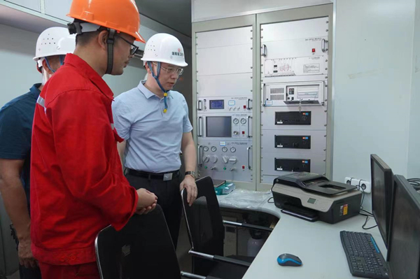 “天气酷热,大家辛苦了。”谈文胜每到一处,都向工作人员送关心和慰问。他进入办公场所、控制机房、录井工作室了解项目施工、管理、岩芯编录等情况,并爬上钻探机台实地查看岩芯抽取作业,详细询问项目进展和有关技术问题,与施工人员亲切交流。