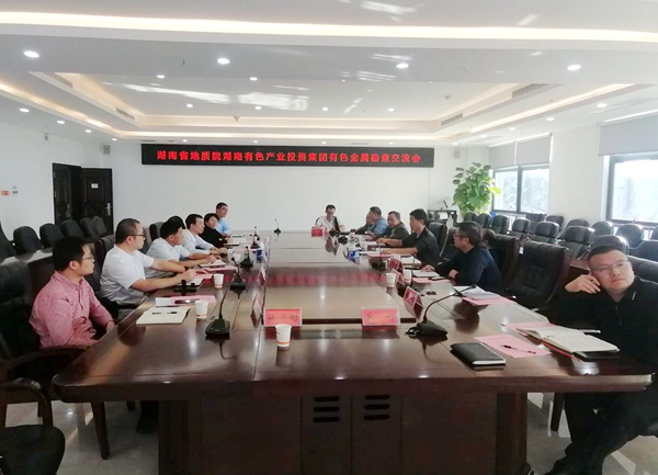10月21日,湖南有色产业投资集团党委委员、副总经理张新念一行到省地质院交流会商工作,双方就贯彻落实张庆伟书记关于高质量发展我省有色行业的有关批示要求进行深入交流探讨,并就在勘查矿种、工作靶区、合作方式等方面合作达成一致。院党委委员、副院长蒋年生主持会议,地质勘查室、地质调查室、院属单位有关人员参加座谈。(文图/张大礼 编辑/司秀梅)