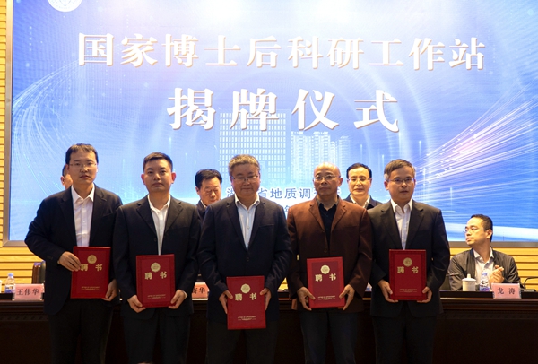 11月4日下午,省地调所隆重举行国家级博士后科研工作站揭牌仪式,这是落户省地质院系统的第二个国家级博士后科研工作站。省人力资源和社会保障厅党组成员、副厅长阳望平,省地质院院长何寄华为地调所博士后工作站揭牌并致辞,省地质院党委委员、副院长王伟华出席仪式。
