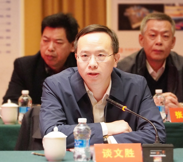 谈文胜在致辞中表示,常德市是资源大市、生态强市、鱼米之乡、文化名城,是湖南省高质量发展的第一梯队、全国百强城市、长江中游城市群的重要成员。湖南省地质院以地质工作助力地方发展为价值追求,多年来为常德市提供了广泛的地质服务,贡献了积极的地质力量。建设现代化新常德与省地质院实施“一体两翼三支撑”发展战略、打造全国一流现代化的地质湘军目标十分契合。本次签约正是巩固双方良好合作关系的务实之举,也是地方地质融合发展的迫切之需。为进一步将专业优质的地质力量转化为建设社会主义现代化新常德的生动实践,谈文胜倡议,一要畅通渠道,高位推动合作落实。要加强“现代常德”与“地质湘军”的深度融合,打造市、院新型协作发展典范;二要善作善为,持续拓展合作领域。要突出地质工作服务全省经济“发展六仗”,全方位全领域拓展双方在资源保障、环境保护、空间规划、防灾减灾、城市建设等领域更深层次的合作发展;三要互利共赢,共同取得合作实效。要立足常德市经济发展现实需要,持续推动“地质+”与“+地质”走深走实,助力新时代湖南地质和常德市经济社会高质量发展,共同为现代化新湖南建设再立新功。