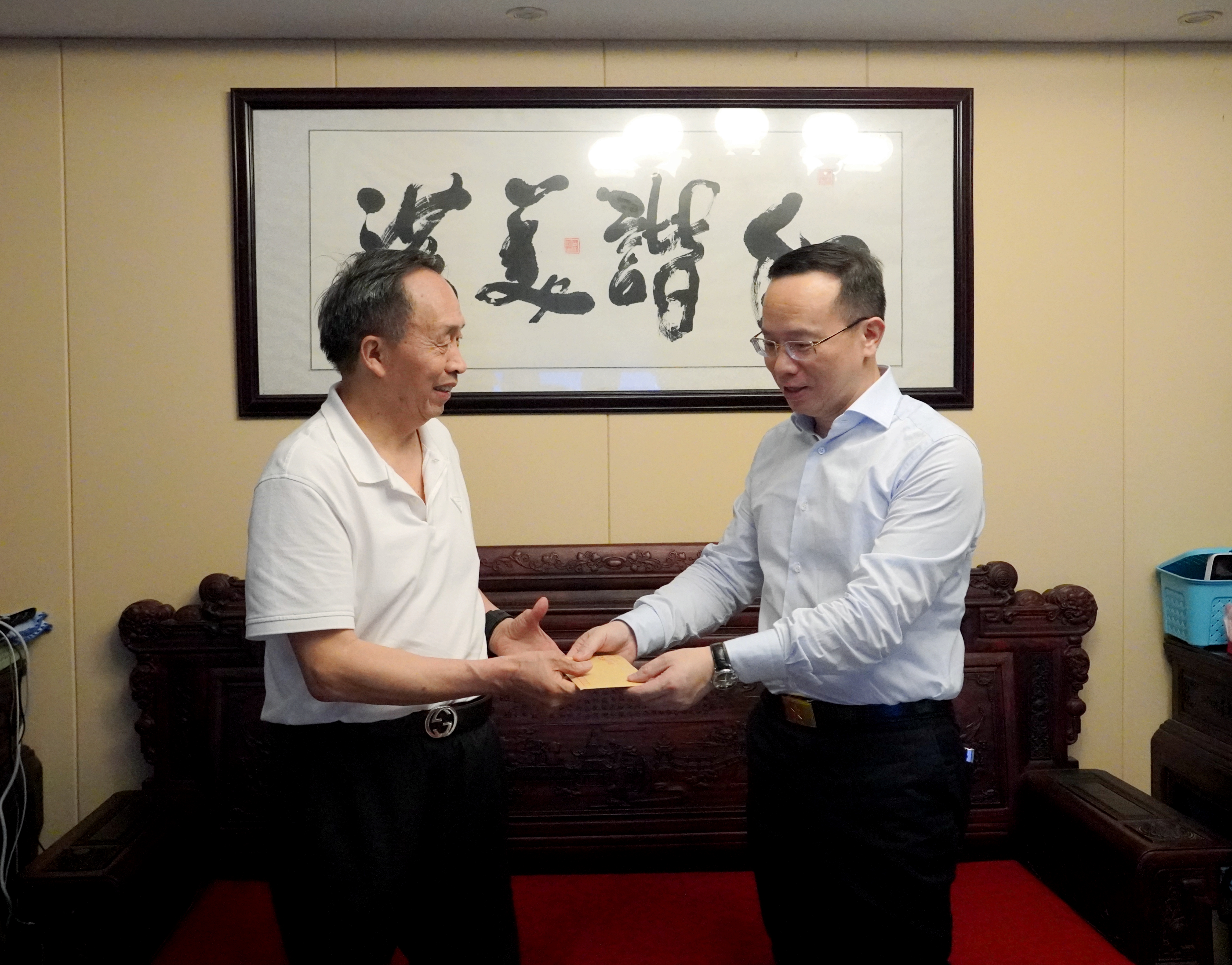 在中国共产党成立103周年之际,为了让老党员在生活上得到帮扶、精神上得到激励、情感上得到关心,省地质院党委书记谈文胜走访慰问抗美援朝老兵唐敷安和“徐特立教育奖”获得者周林生两名离退休党员,送去院党委的关怀,并致以崇高敬意和亲切问候。