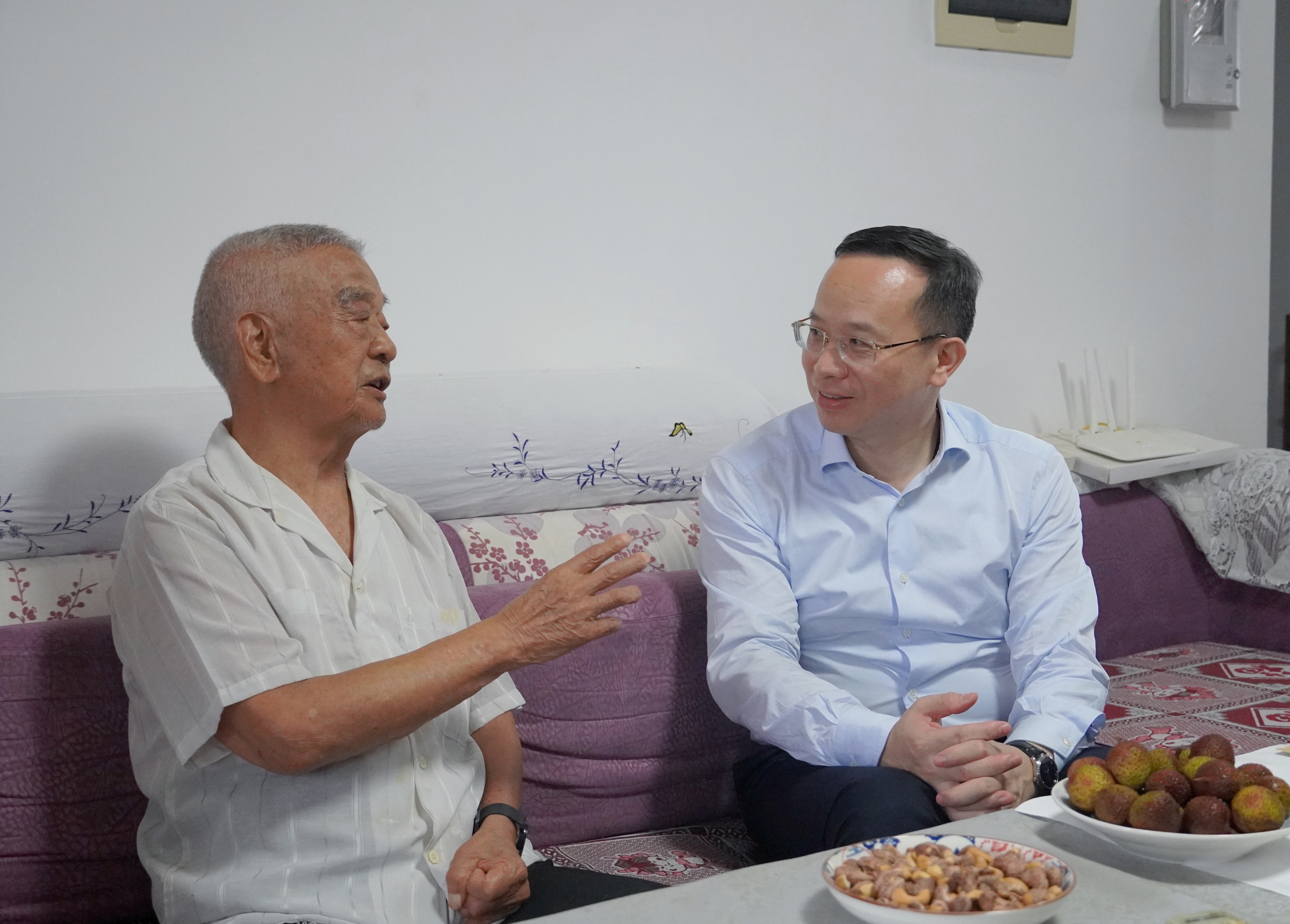 谈文胜“七一”前夕走访慰问老党员