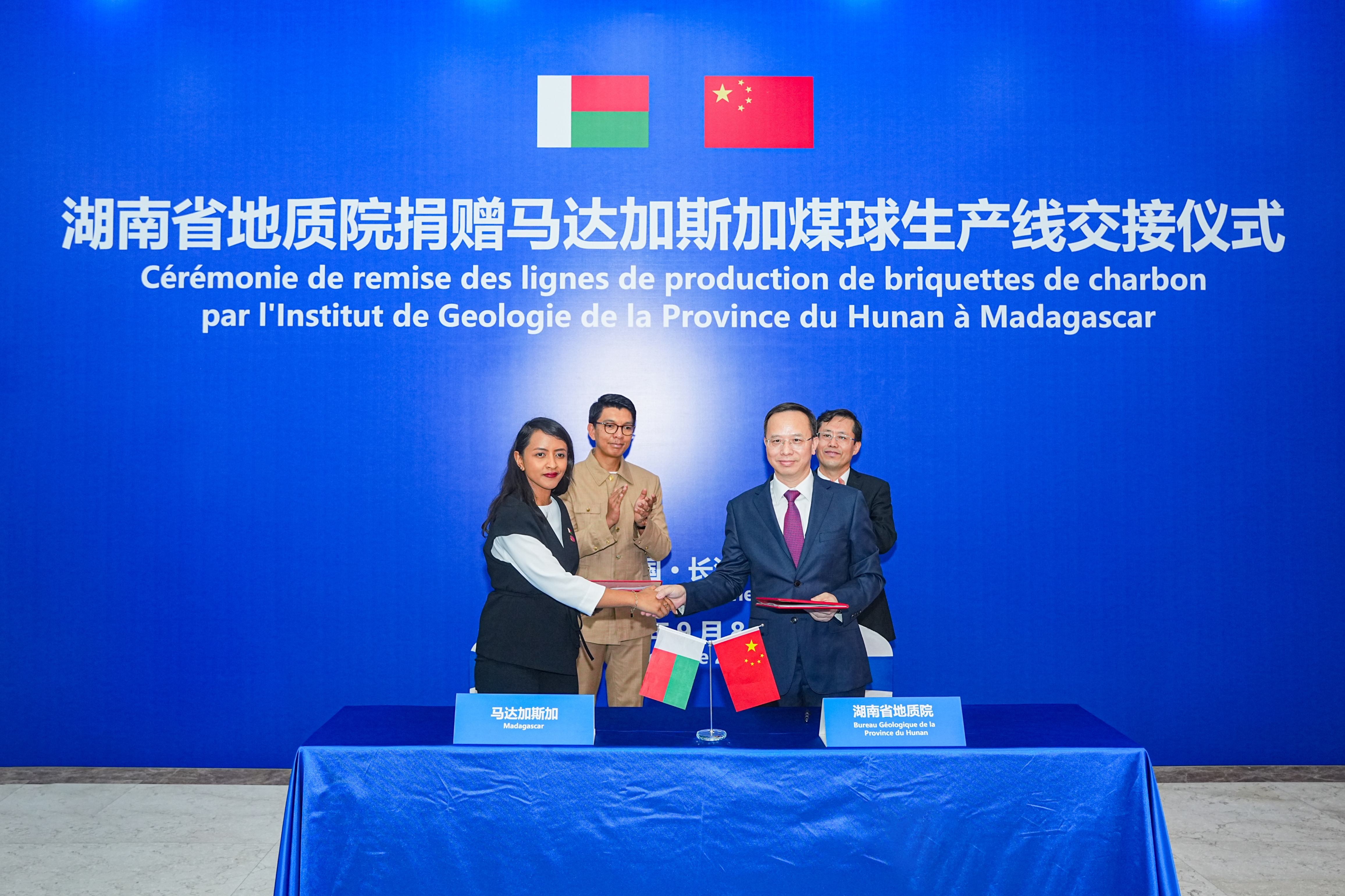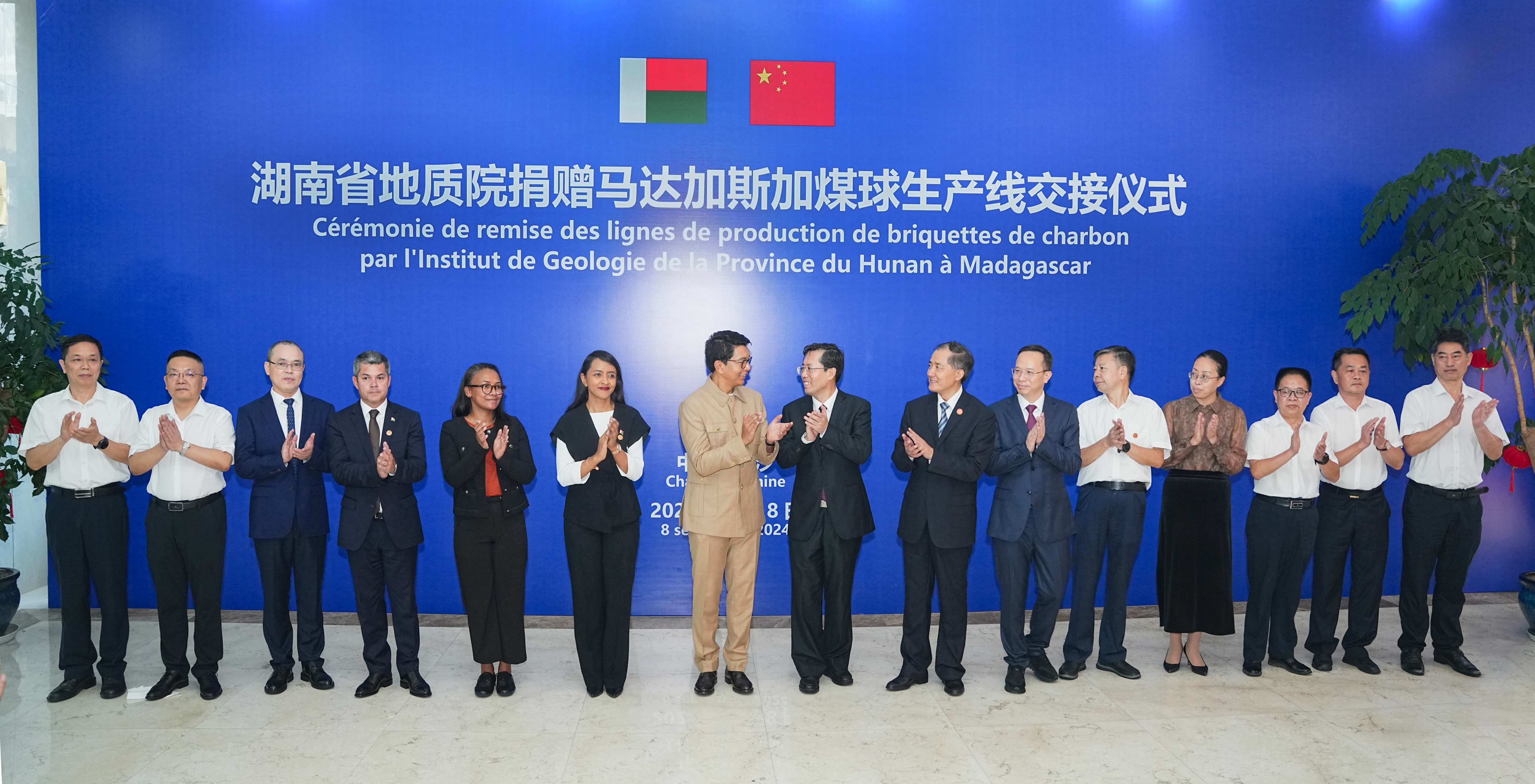 马达加斯加总统拉乔利纳考察湖南省地质院并出席煤球生产线捐赠仪式