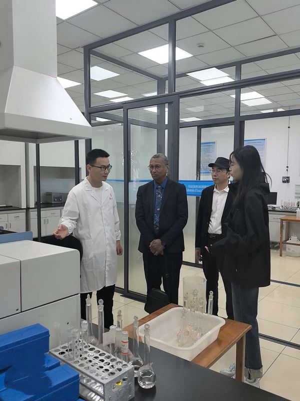 5月7日下午,马达加斯加矿业部秘书长亨利一行走进马达加斯加湖南地质检测实验室,深入考察仪器设备、技术团队、工作条件及认证备案等情况,湖南地质非洲工作站站长伍新民与实验室负责人陪同,共探矿业合作新机遇。