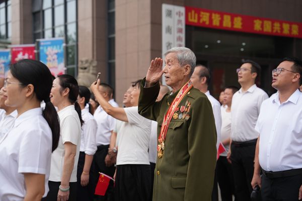 95岁高龄的省核地质所离休干部郭亚忠,拥有78年党龄,他凝望着国旗动情地说:“看着五星红旗冉冉升起,依旧心潮澎湃。”这份跨越近一个世纪的守望,见证了一代代地质人的赤子之心。