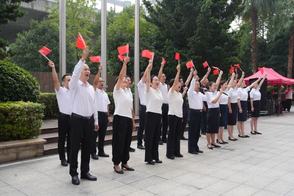 金秋十月,晨光映照初心。10月1日上午9时,省地质院机关办公楼前坪气氛庄重而热烈。院领导、离退休老同志代表、机关各部室工作人员、院属地灾所、工矿所、核地质所班子成员及职工代表等百余人整齐列队,白衣深装,精神抖擞,共同迎接中华人民共和国76周年华诞。