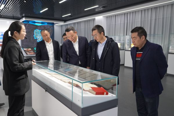 谈文胜一行在中国地调局南京地质调查中心参观考察。