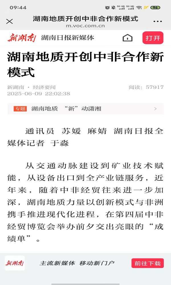 【湖南日报】湖南地质开创中非合作新模式
