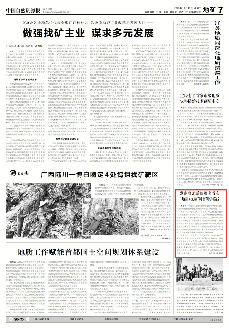 【中国自然资源报】湖南省地质院推介首条“地质 + 文旅” 科普研学路线