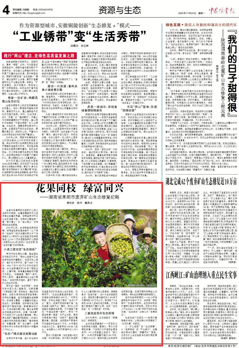 【中国矿业报】花果同枝 绿富同兴——湖南省耒阳市废弃矿山生态修复纪略