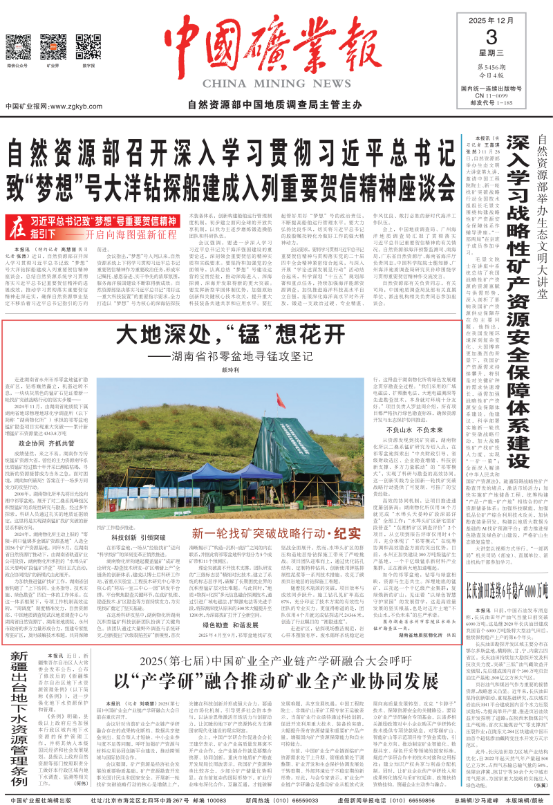 【中国矿业报头版】大地深处,“锰” 想花开—— 湖南省祁零盆地寻锰攻坚记