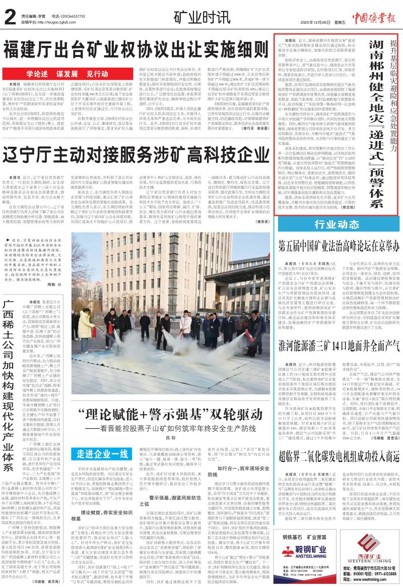 【中国矿业报】提升基层临灾避险和应急处置能力 湖南郴州健全地灾 「递进式」 预警体系
