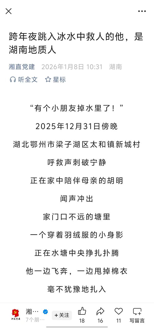 【湘直党建】跨年夜跳入冰水中救人的他,是湖南地质人