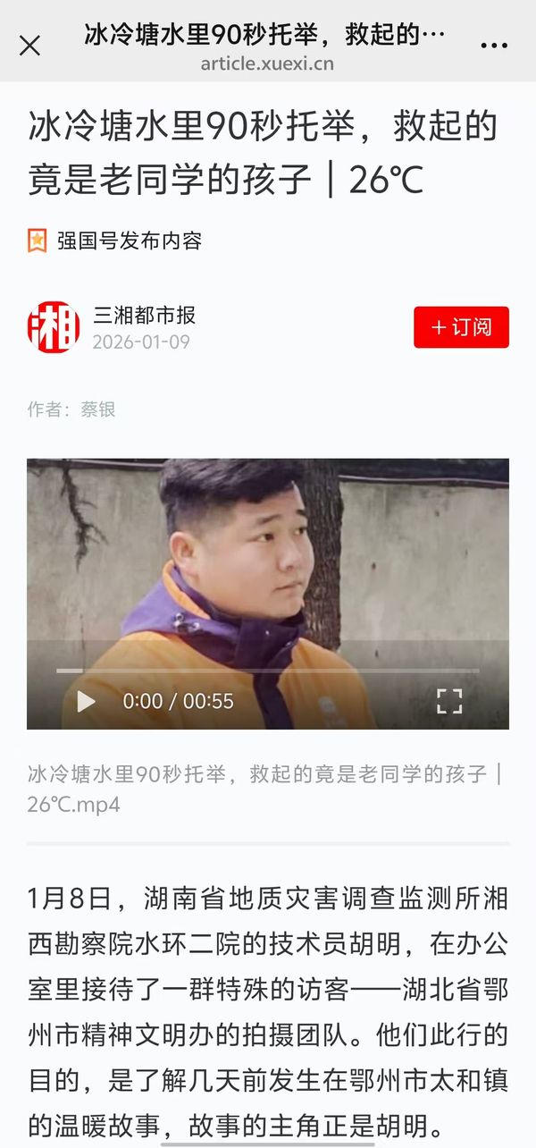 【三湘都市报】冰冷塘水里90秒托举,救起的竟是老同学的孩子|26℃