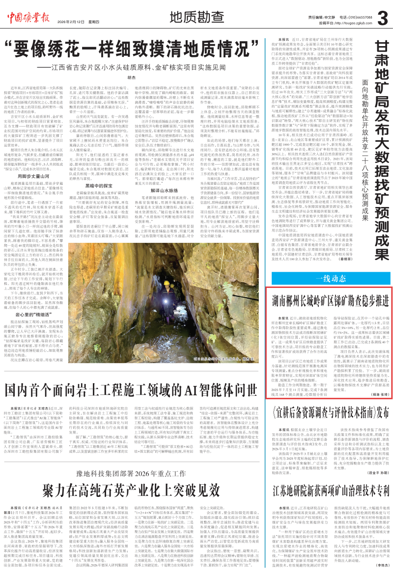 【中国矿业报】湖南郴州长城岭矿区锑矿勘查稳步推进