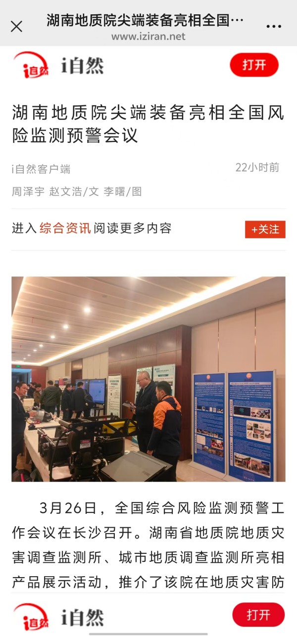 【i自然】湖南地质院尖端装备亮相全国风险监测预警会议