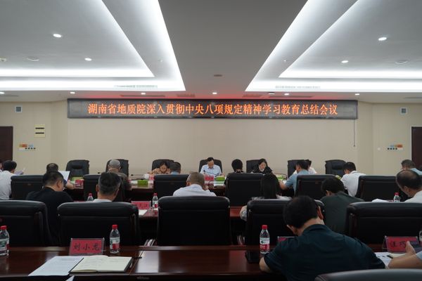 9月5日,湖南省地质院召开深入贯彻中央八项规定精神学习教育总结会议,传达学习习近平总书记关于学习教育的重要指示和中央、省委党的建设工作领导小组会议精神,系统总结全院学习教育工作成效,对巩固拓展学习教育成果、推动作风建设常态长效进行再部署、再推进。院党委书记谈文胜主持会议并讲话,院领导张皓、王惜珍、全铁军、刘凤娟、李晴日、刘拥军、曹幼元参加会议。