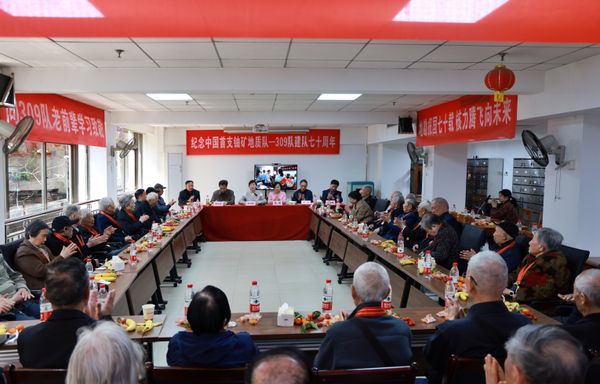 参加此次活动的老同志们大多已年逾八旬,其中不乏102岁的我国第一颗原子弹爆炸60周年纪念章获得者,以及96岁的离休干部。尽管年事已高,他们参与活动的热情却丝毫不减。有的坐着轮椅,有的在子女的搀扶下,依然坚持来到会场。现场,老同志们深情地回忆起309队往昔筚路蓝缕、艰苦卓绝的奋斗历程。那些激情燃烧的岁月里,为了争分夺秒提交新中国首份铀矿储量报告,队员们在“千米掘进”竞赛中奋勇拼搏,以月掘进1111米的成绩创下世界纪录,成为队伍发展史上的高光时刻;而116位勘探队员为了国家的铀矿事业壮烈牺牲,他们的英雄事迹更是深深烙印在每一位参与者的心中。“那段日子,我们与时间赛跑,用铁锤和汗水叩开地下宝藏,只为挺起民族脊梁!”“想想那些光荣献身的英雄,我们这些人享受到了国家繁荣富强带来的美好生活,感到十分幸运和满足”,老队员们饱含深情的话语,让在场的每一个人都深受感动。