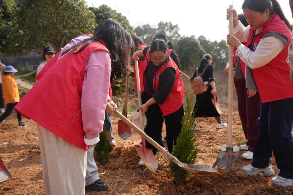 2月28日下午,院机关、省地灾所女职工志愿者在雨花区跳马镇石燕湖村开展“春暖三月学雷锋 植树护绿我先行”主题志愿服务活动。院党委委员、副院长刘凤娟参加。活动现场,志愿者们热情高涨、干劲十足,她们挥锹铲土、扶苗入坑、填土夯实、提桶浇灌,每道工序有条不紊。经过共同劳作,100余株小树苗为原本空旷的土地披上了“绿装”,焕发出盎然生机与蓬勃活力,勾勒出一幅饱含希望的春日植树盛景图。(文/肖 纳  图/黄利群  谢瑶函)