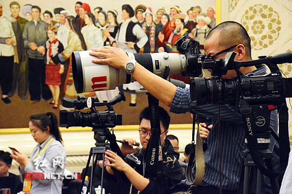 “长枪短炮”聚焦湖南省代表团。