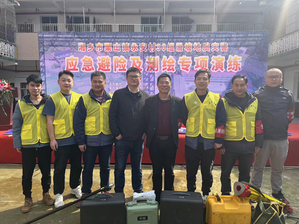 4月7日,省空间所作为技术支撑单位协助湘乡市人民政府开展栗山镇永安村滑坡地质灾害应急避险及测绘专项演练。