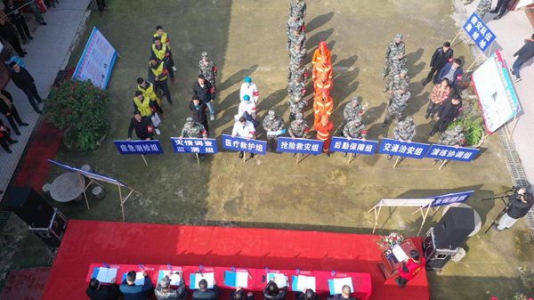 演练模拟受强降雨影响,栗山镇养老院地质灾害点出现重大险情,开展应急避险情况。接到险情,镇应急演练指挥部启动应急预案,迅速集结成立交通治安、抢险救灾、医疗救护、应急测绘、灾险情调查监测、后勤保障六个小组,其中应急测绘组、灾险情调查监测组分别由省空间所测绘二院、生态环境三院组成。演练过程中,应急测绘组携带应急装备快速赶往灾情现场,第一时间传回地灾点直播画面,并于1小时之内传回地灾点0.25km2正射影像图、测量平面图以及通过对比灾前资料,统计出的淹没范围内房屋、农田、道路等灾情信息,为现场指挥提供决策依据;灾情调查监测组在受困群众全部安全撤离后,再次对险情区域开展全面勘查,分析险情发生原因,并报指挥部研究长效防范措施。