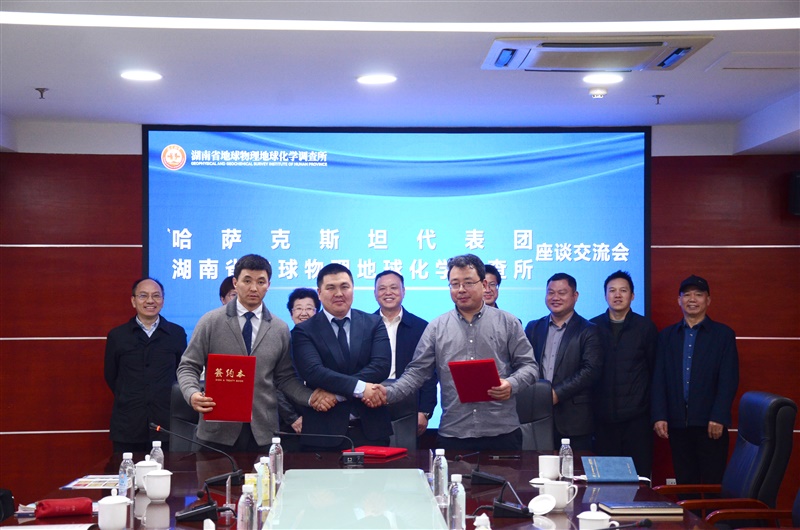 10月23日下午,湖南省地质院物化所(简称“物化所”)与哈萨克斯坦萨特巴耶夫地质科学院(简称“萨特巴耶夫地科院”)、Digital Geology公司签订合作框架协议。萨特巴耶夫地科院专家叶尔坚·别克陶奥夫,Digital Geology公司总经理马拉特·阿比舍夫,物化所总工程师徐军伟代表三方签署协议;物化所所长廖凤初、党委书记雷建斌见证签约。