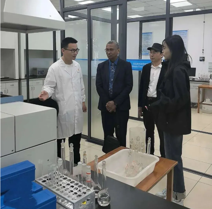 5月7日下午,马达加斯加矿业部秘书长亨利一行走进马达加斯加湖南地质检测实验室,深入考察仪器设备、技术团队、工作条件及认证备案等情况,湖南地质非洲工作站站长伍新民与实验室负责人陪同,共探矿业合作新机遇。