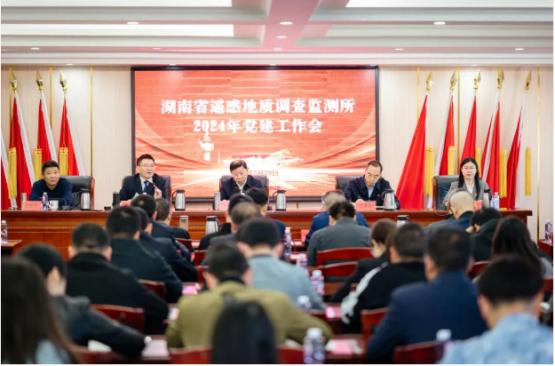 会上,刘浩群代表党委作题为《解放思想 创新引领——以高质量党建赋能高质量发展》的党建工作报告。他指出,过去一年,遥感所各级党组织全面落实党中央决策部署和省委、院党委的工作要求,扎实开展学习贯彻习近平新时代中国特色社会主义思想主题教育,聚焦主责主业,发挥带头作用,坚持抓政治建设,以政治定力筑牢忠诚本色;抓思想建设,以思想动力汇聚生态主色;抓组织建设,以基层活力夯实组织成色;抓队伍建设,以干部能力成就工作特色;抓作风建设,以作风实力浸润清廉底色;抓群团建设,以群团合力凝聚品牌亮色,推动党建工作取得显著成效。他强调,2024年党的建设工作要坚持以习近平新时代中国特色社会主义思想为指导,全面贯彻党的二十大和二十届二中全会精神,全面聚焦省地质院“七个着力”“八大攻坚”目标,以巩固拓展主题教育成果为主线,抓好巡察整改落实,解放思想,创新引领,在高站位引领政治自觉上久久为功,突出形象要“优”;在高质量武装思想固本上持续发力,突出思想要“活”;在高标准服务作用发挥上积极主动,突出组织要“强”;在高效能提升干部作为上锲而不舍,突出素质要“硬”;在高要求强化正风肃纪上踏石留印,突出纪律要“严”;在高起点谋划聚力发展上驰而不息,突出品牌要“亮”,以高质量党建赋能遥感地质事业高质量发展。