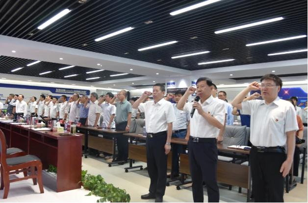 大会在嘹亮的国歌声中拉开序幕。刘浩群带领全体党员重温入党誓词,并代表所党委向辛勤工作在海外、省内外、防汛减灾一线各个工作岗位上的党员干部及家属、离退休党员致以节日的问候和崇高的敬意。