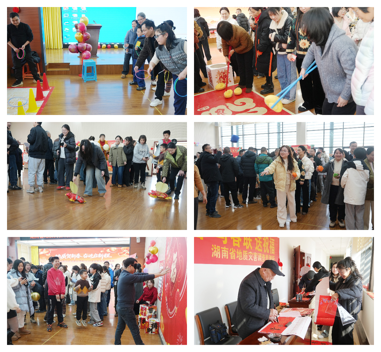 欢声笑语迎新春,凝心聚力启新程。2月11日,湖南省地质院地灾所以“地质贺新春 奋进启新程”为主题,举办2026年贺新春游艺活动。所党委书记唐军民、副所长张辉志、工会主席皇甫悦星参加活动并为全体职工送上新春祝福。