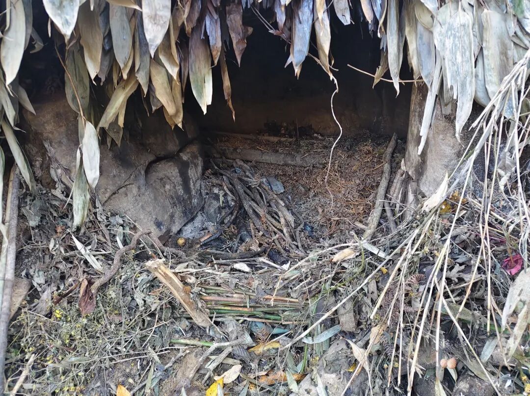 赛区地处喀斯特地貌区,地形复杂,选手庇护所选址分散且地质条件各异,潜在风险不容忽视。技术人员秉持“精准排查、不留死角”原则,重点核查地形地貌、坡面堆积物、岩体稳定性,精准识别出两类核心风险隐患。一类是危岩崩塌风险:位于层状灰岩岩壁下方的庇护所,因受结构面切割影响,存在局部崩塌风险;位于岩块间的庇护所,部分选手为扩大空间烘烤岩石后泼浇冷水致其破裂,或在岩块间生火引发裂隙干缩扩展,加之降雨冷热交替,加剧岩体不稳定性,易造成岩块脆性断裂。另一类是坡面滚石风险,部分坡脚庇护所上方存在松散石块、转石及浮石,在降雨、震动影响下易发生滚落伤人情况。